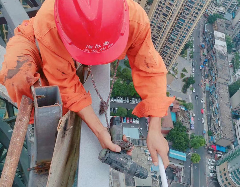 潔爾亮為成都龍湖上城大樓頂部高空安裝幕墻淋水系統